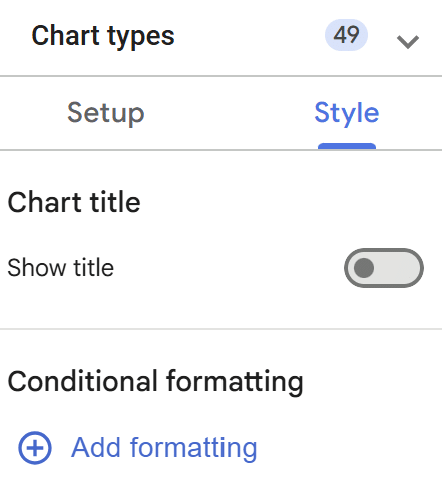 To enable conditional formatting, click into the “Style” section of your table and select “Add formatting” under the “Conditional formatting” section.